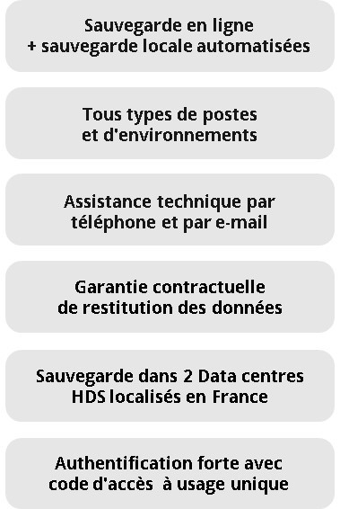 La solution Pharmacloud inclut un logiciel de gestion des sauvegardes pour Windows, Mac OS et Linux, un espace de stockage redondé et une assistance technique proactive.